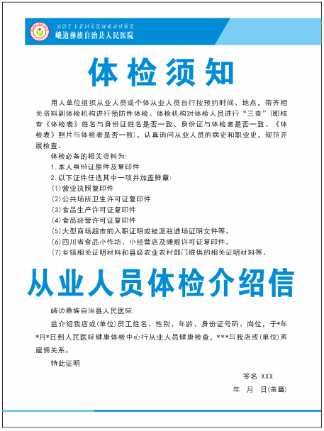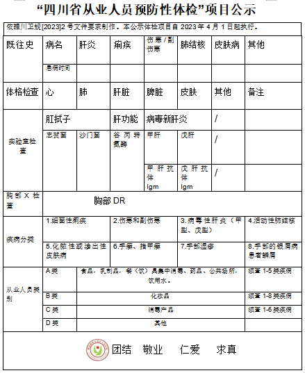 四川省从业人员预防性体检项目表